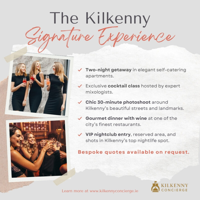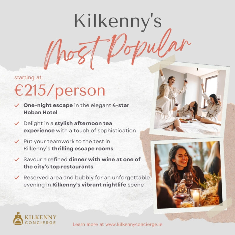 Have you been given the honour of planning a Kilkenny Hen Party for someone special? Don’t worry, we’ve got everything covered. With Kilkenny Concierge, you and the girls can enjoy a fully all-inclusive hen weekend where every detail is planned, booked, and ready to go!